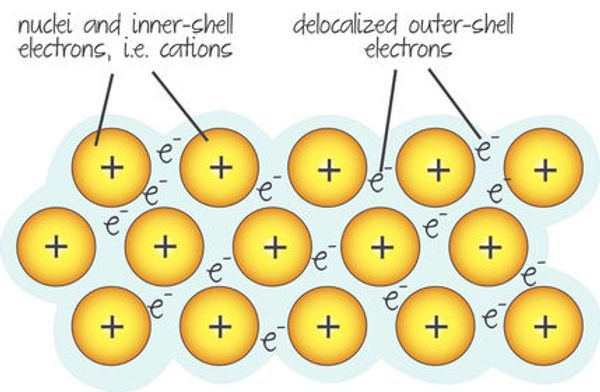 The aluminum lattice that makes up your block is composed of atoms that have inner shell electrons that stay with each atom and outer shell valence electrons that make up the conduction band of the entire lattice and they are free to roam around, as they are shared, and it is this movement that allows metals to conduct electricity. When the electrons flowing in the thermostat turn it into the cathode, the flowing ions begin to move the outer shell electrons in the aluminum and they complete the circuit becoming the anode.